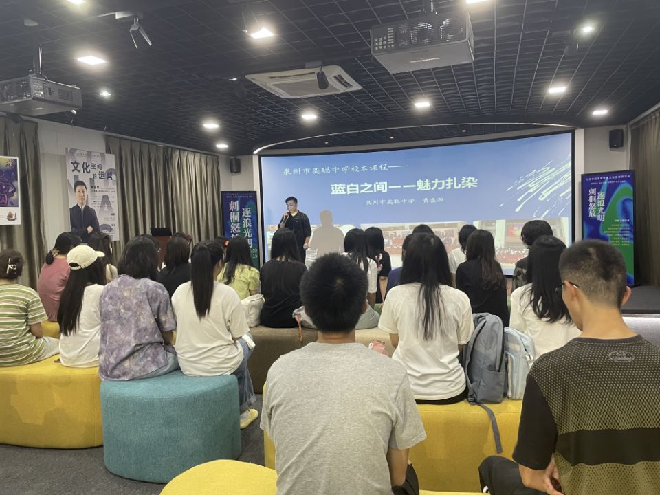 6月19日晚上于普照楼228,伟德国际1946官网邀请外聘教师苏一森为公司20级文创班同学开展“蓝白之间——魅力扎染”非遗文化教学活动。