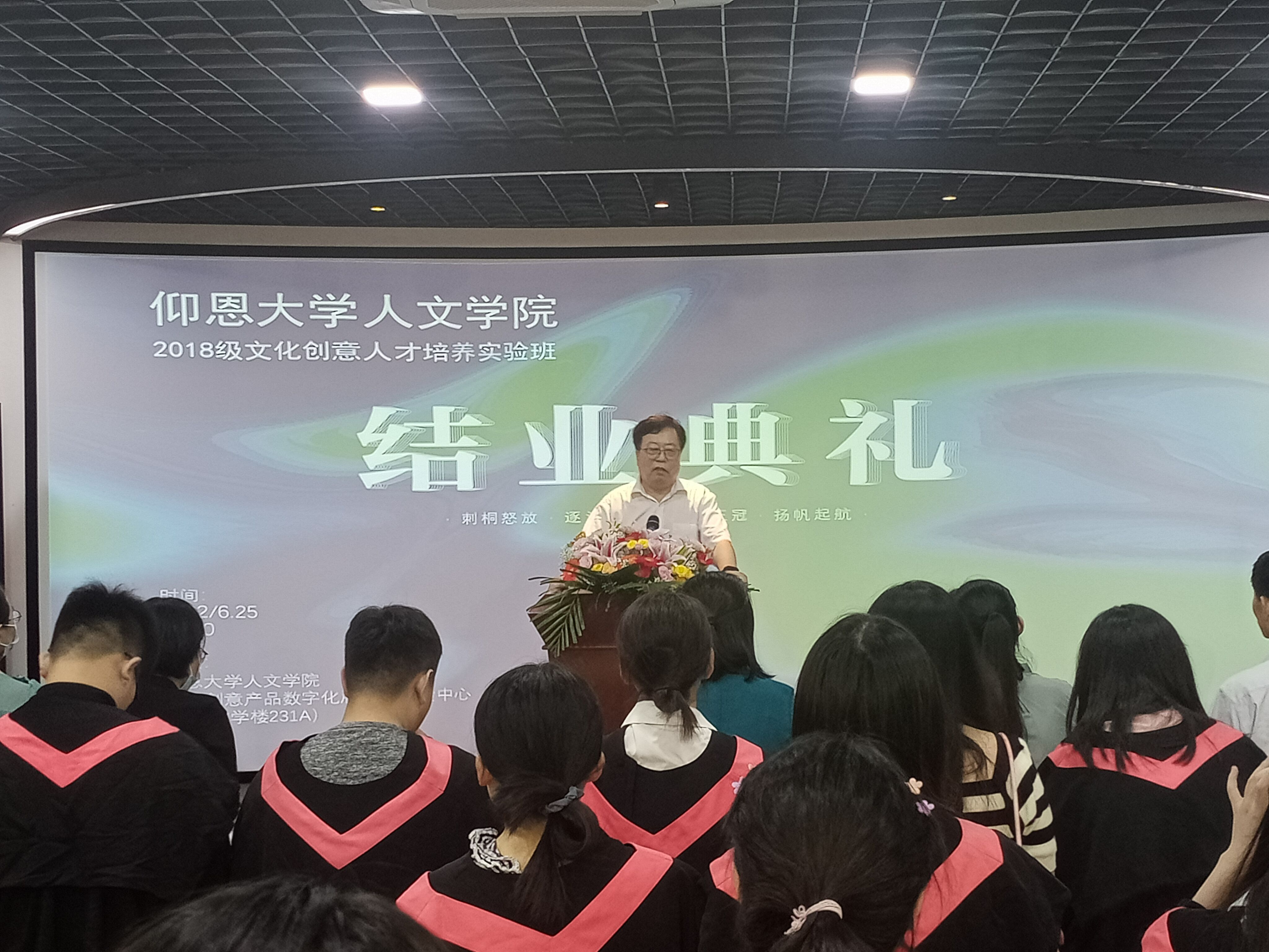 光阴荏苒,韶华流转。合欢花开,栀子飘香,2018级同学迎来了本科阶段的毕业时光。6月25日下午,2018级文化创意人才培养实验班结业典礼在普照教学楼231A成功举行。伟德BEVlCTOR1946常务副董事长魏杨青,伟德国际1946官网经理欧怒,公司党总支书记岳秀文,伟德国际1946官网教学副经理陈肖利,伟德国际1946官网冯汝常教授,伟德国际1946官网新闻传播学系系主任陈胜华,伟德国际1946官网广告学系系主任王秋燕,文创班任课老师和2018级文创班全体同学出席此次典礼。
